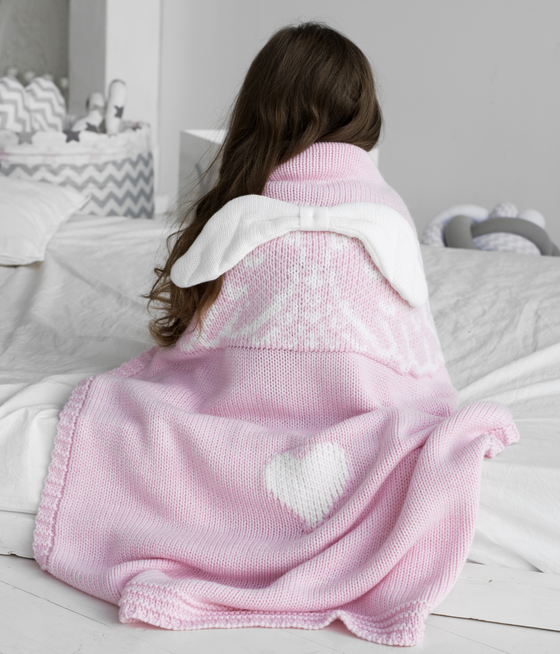 Интерактивный пледик с ангелом - символ нежности и маминой заботы. Работая над дизайном этого пледа, мы учитывали важность разностороннего развития детей! Этот пледик помогает развитию мелкой моторики благодаря объемным деталям, яркие и пастельные цвета способствуют развитию творческих способностей, а тепло и мягкость шерсти мериноса дарят чувство защищенности и успокаивают!